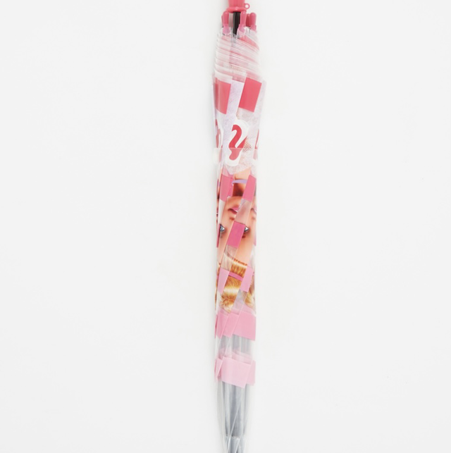 Parapluie canne Barbie. Transparent. 8 baleines et aiguillettes. Ouverture et fermeture manuelles. Matière : 100% polyoléfine